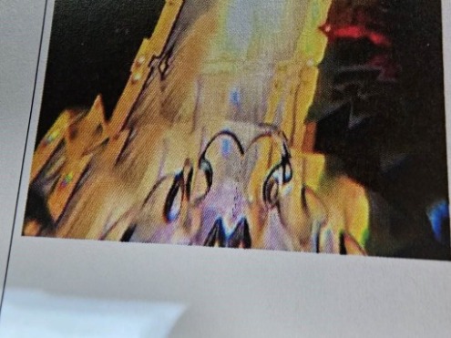 有兩種泉的意象,一種是「深不可想像的慈悲之泉」,一種是「純潔之泉」。「深不可想像慈悲之泉」從耶穌開敞的心懷中流出來,怎麼就變成「純潔之泉」呢?這就是耶穌深邃至極的奧秘!耶穌擁有一顆「敞開」、「純潔」有如「水晶」的聖心,水晶的特性能讓上帝的真光「盡顯光華」。上帝就是耶穌聖心內「深不可想像的慈悲之泉」,一團璀璨輝煌、深到看不透的大光暈;而水晶的純潔能忠實「反映」上帝之光,水晶敞開的結構能向外「擴射」上帝之光。耶穌有如水晶般的聖心能真實反映、擴射上帝的光暈,透析出清明、純潔的金色光線,這就是「純潔之泉」。